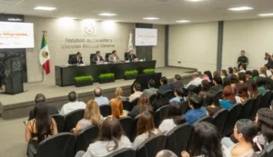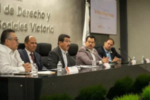 En su ponencia, Robles Gómez, quien es licenciado y maestro en Derecho por la UNAM, y como parte de su trayectoria ha sido legislador, especializado en el tema migratorio, abordó la evolución del voto migrante, sus implicaciones legales y los retos rumbo a las elecciones de 2027, señalando que los mexicanos en el exterior aún enfrentan limitaciones, al no poder votar por todas las representaciones, lo que plantea la necesidad de un modelo más incluyente.